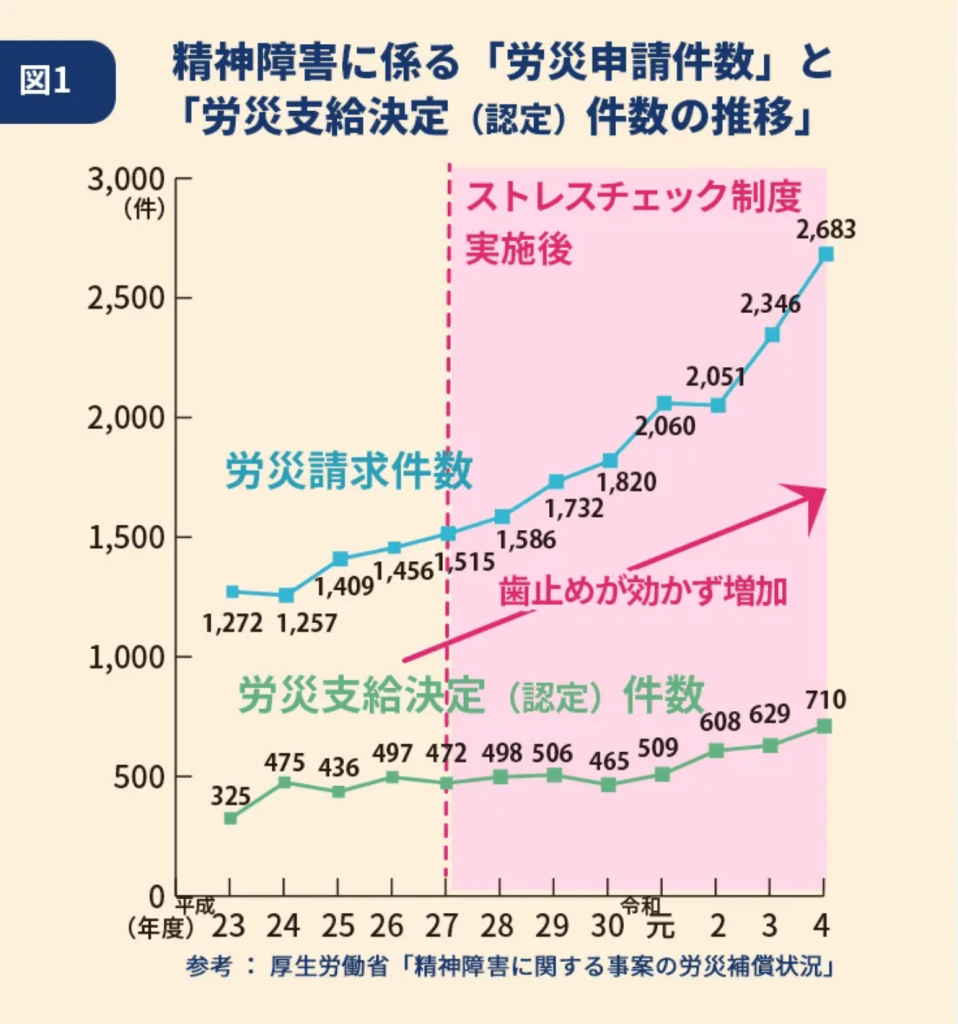 しかしメンタルへルス不調者に歯止めが効かず、 ストレスなどが原因で精神疾患を発病し 「労災補償の請求件数」・ 「労災支給決定」 共に過去最多を更新し続けている報告書も公表されています。