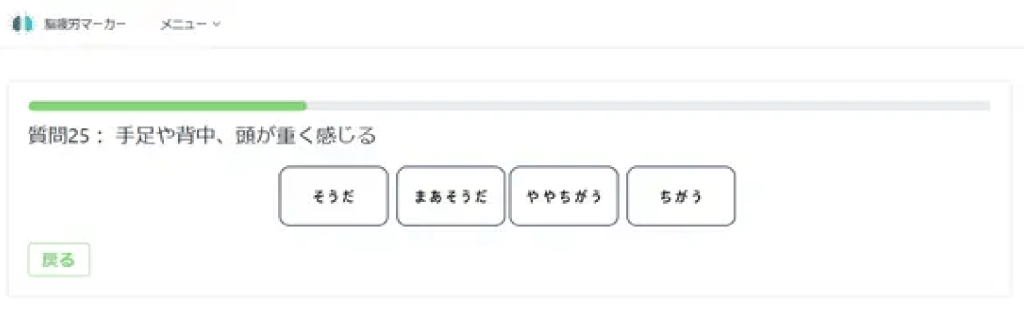様々な質問に簡単な選択方式で答えていきます。進歩状況が上部のバーで表示されます。