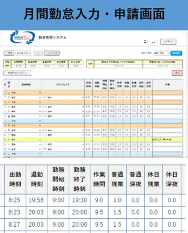 社員の勤怠入力・申請状況確認