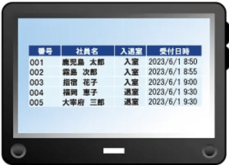 ・従業員のオフィス内や工場内への出入りの管理/来社訪問された方の簡易記録など
