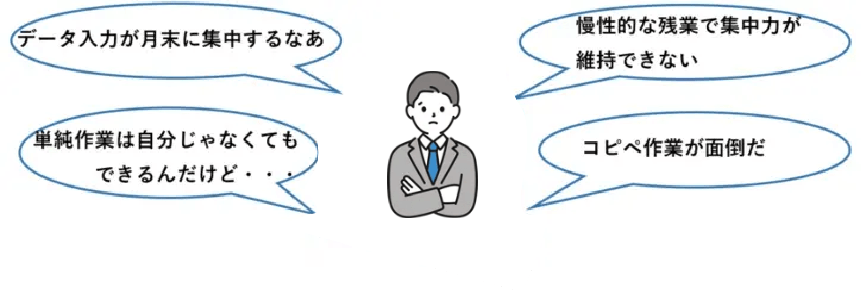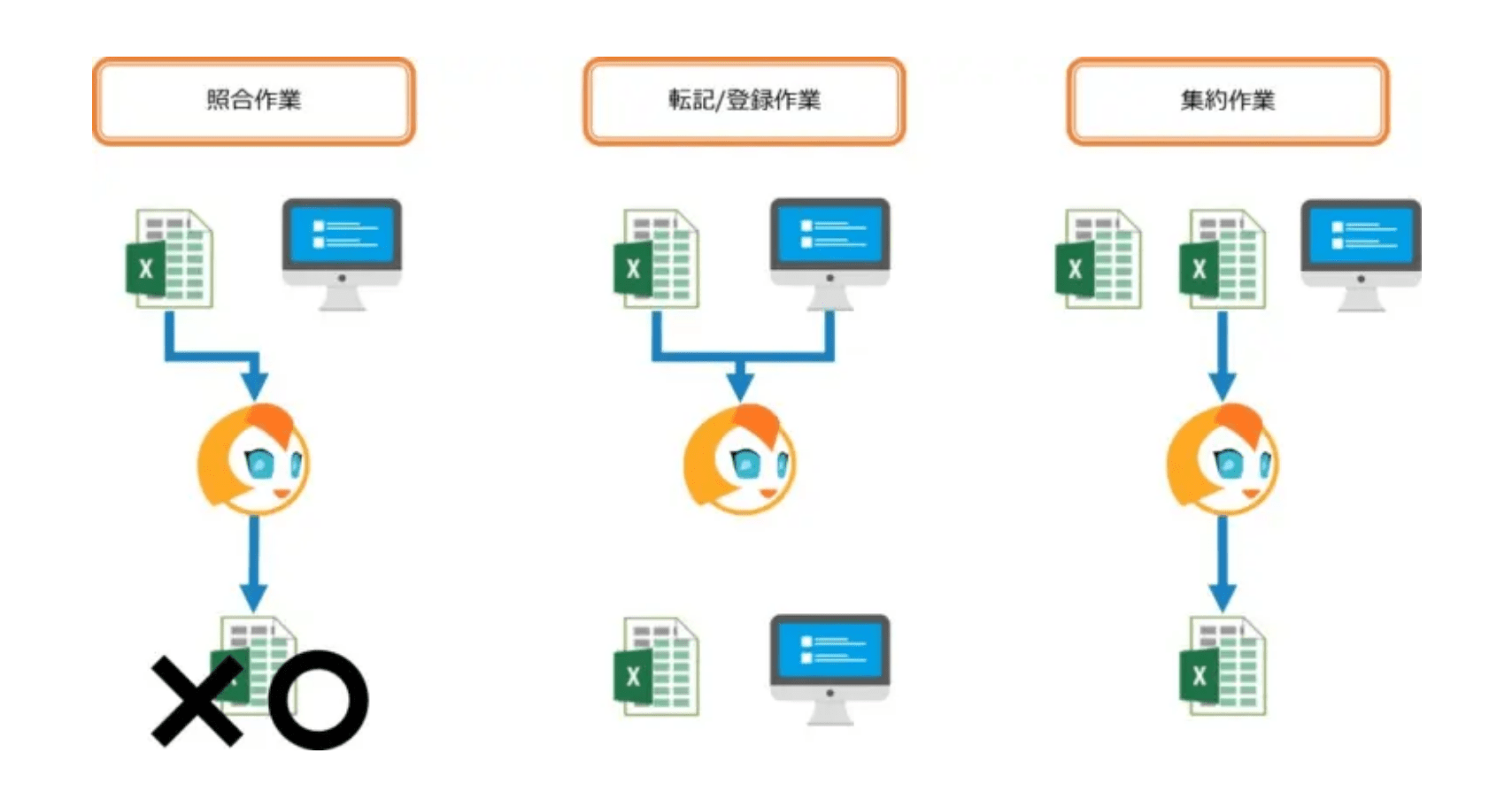 業務システム入力の前段階として、エクセルで作成した資料があったり、WEBページで調べた結果を入力するなどの処理があった場合、この部分までシステム化しようとすると工数も費用もかかってしまいます。